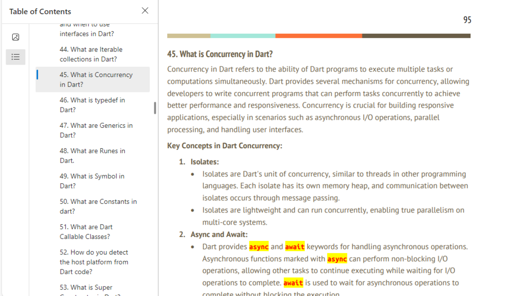 In this book, we'll take you on a journey through the fundamentals of Flutter, covering everything you need to know to ace technical interviews and excel as a Flutter developer. From basic concepts to advanced topics, each question is carefully crafted to provide a comprehensive understanding of Flutter development principles and best practices.